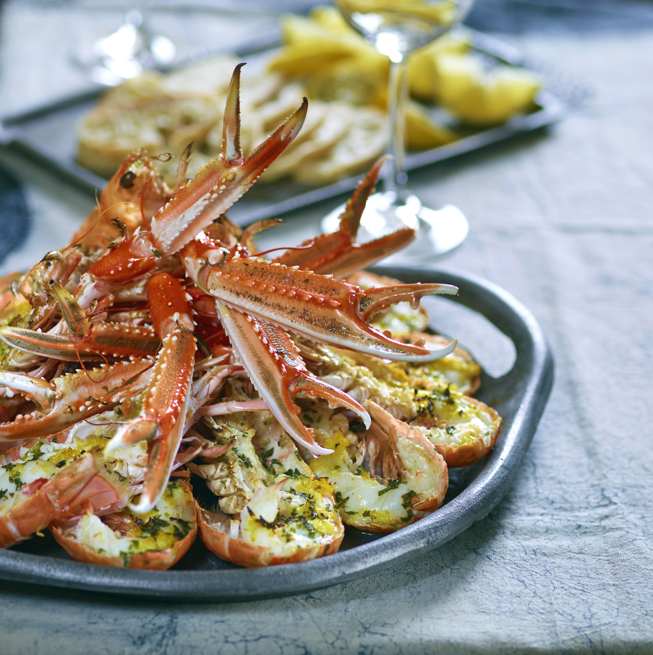 Grillið í ofni við 230°C í ca. 4-7 mínútur eða þar til halarnir byrja að krullast upp, þá má taka þá strax út úr ofninum.