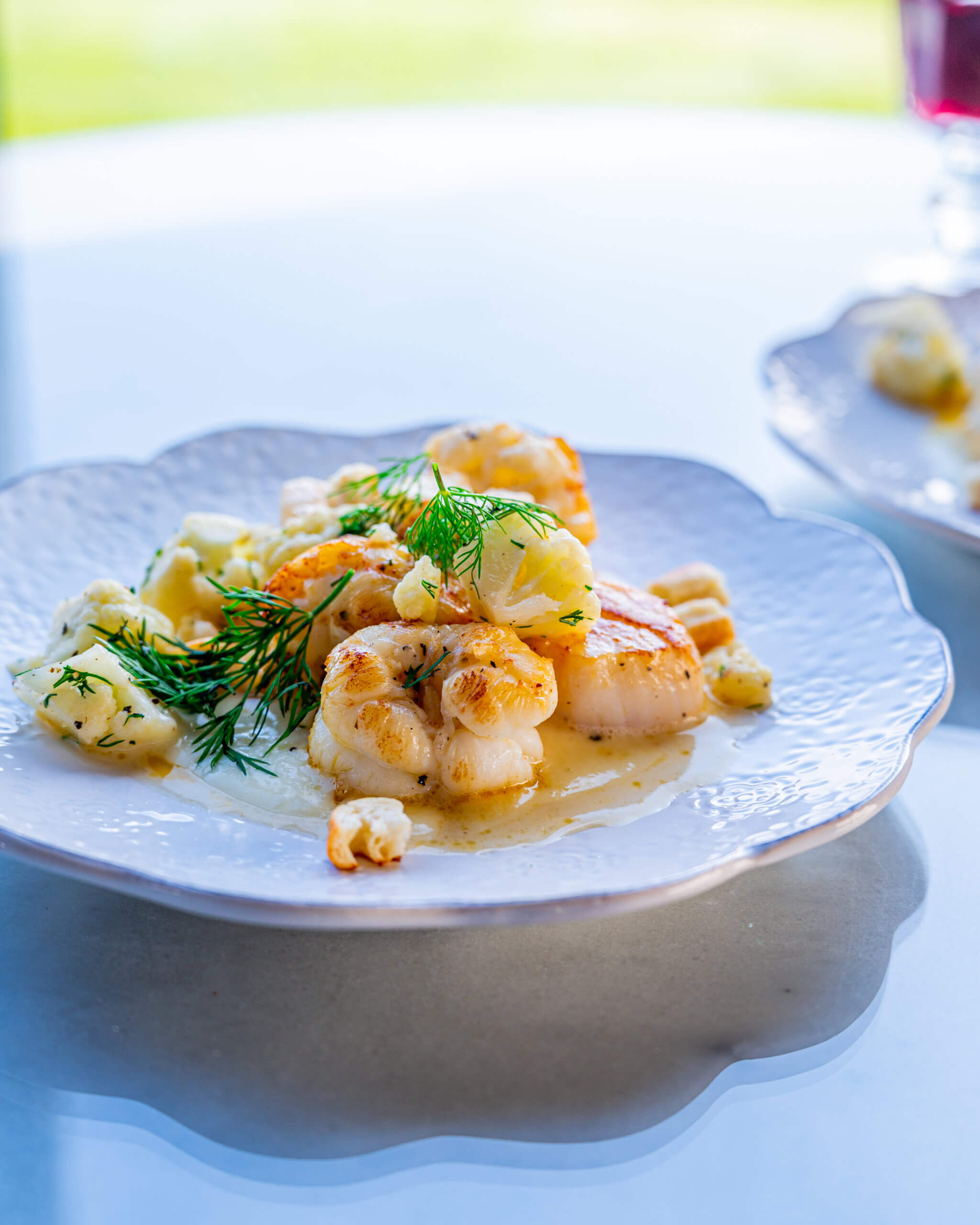 Smjörsteiktir humarhalar og horpuskel.